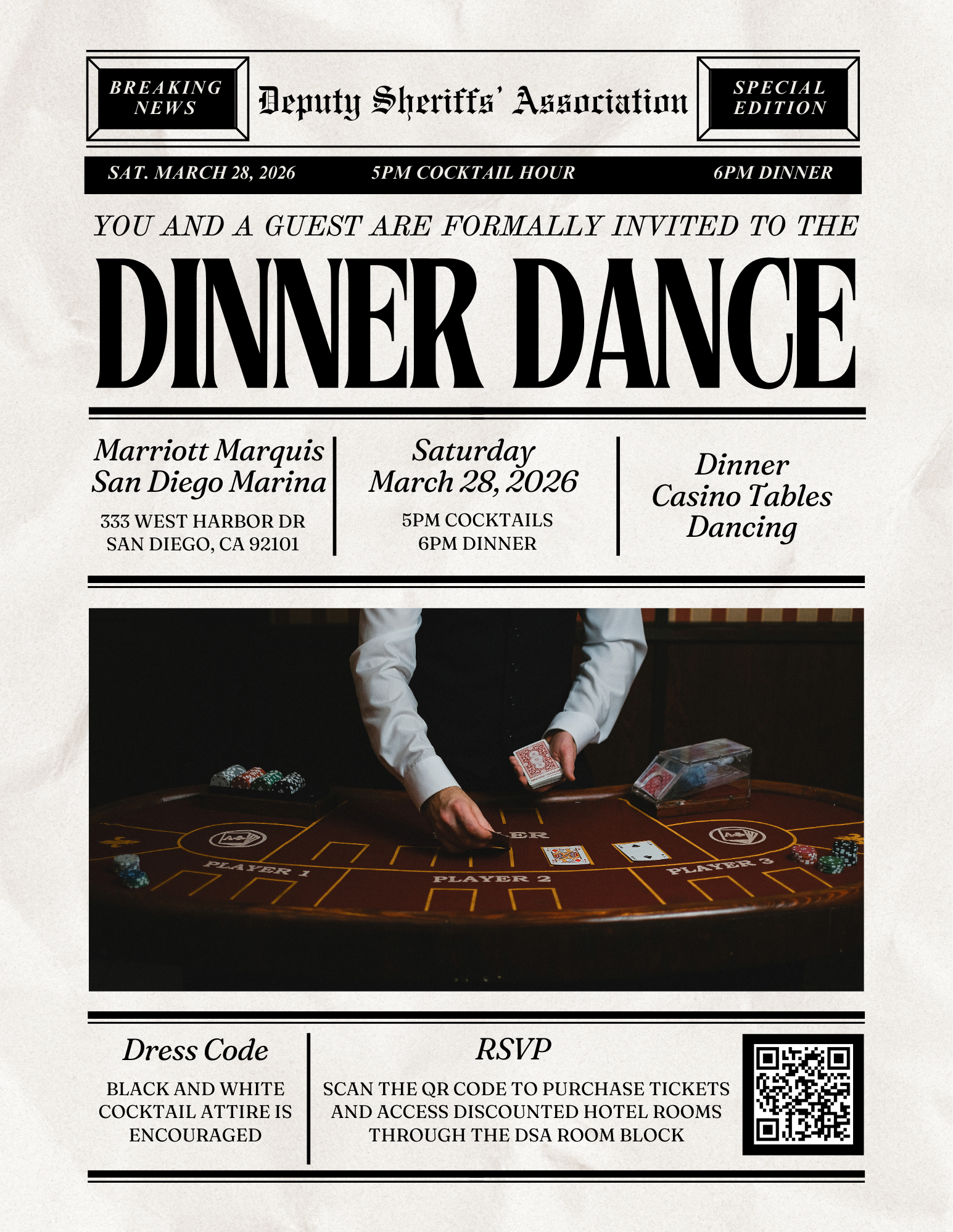 The DSA Dinner Dance is Saturday, March 28th at the Marriott Marquis San Diego Marina. Space is limited, use the button below to secure your spot and book your room!